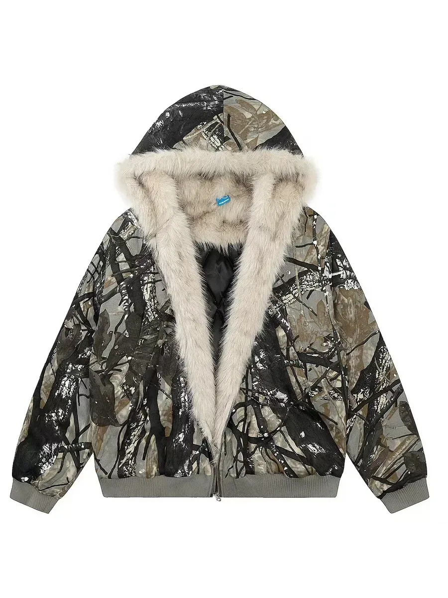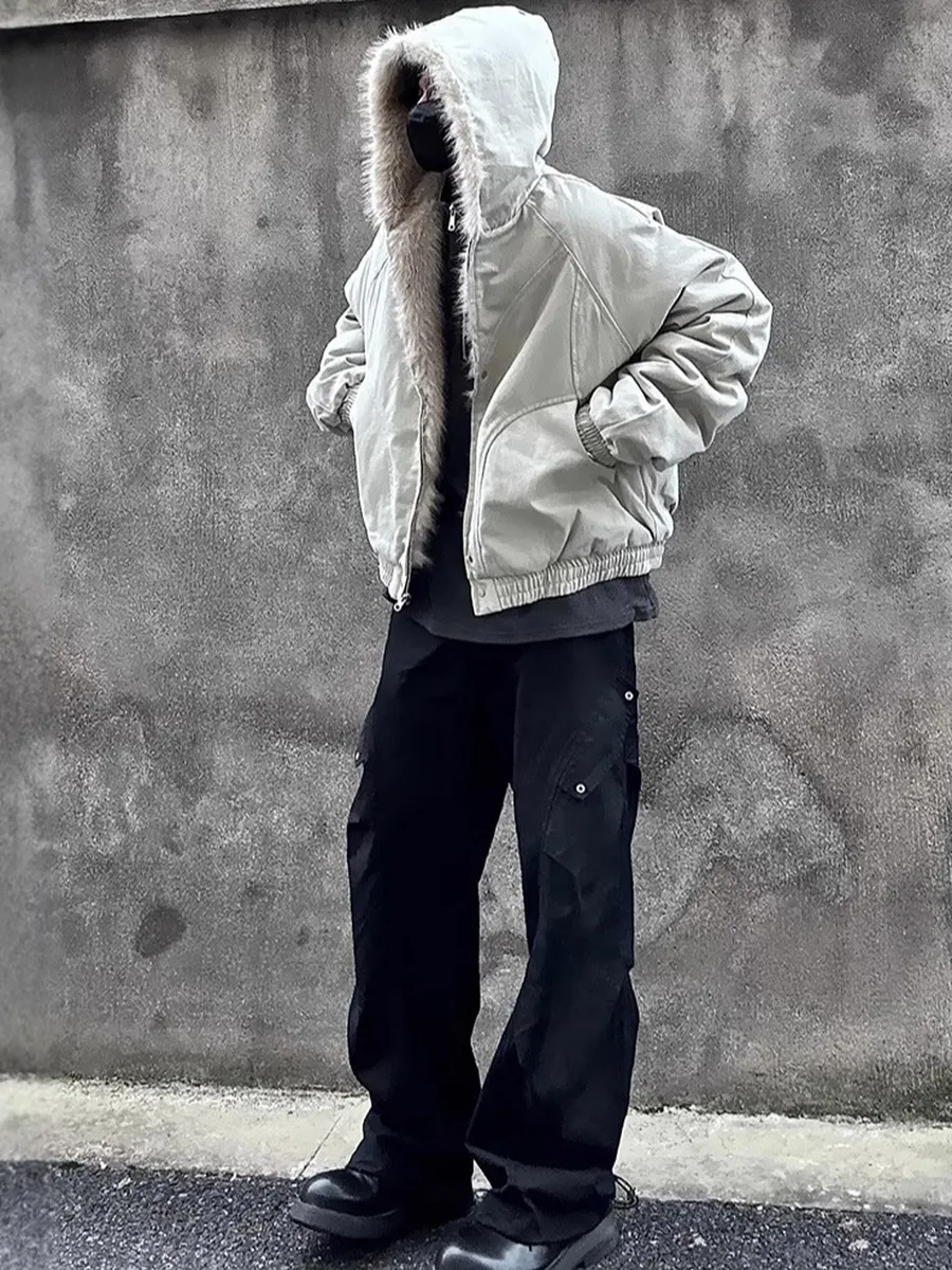 FYD Куртка бомбер оверсайз с мехом на капюшоне двухсторонняя